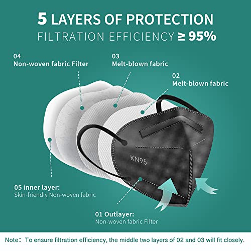 Daddy's Choice KN95 Purism Face Mask, 5-Layer, Black, Pack of 20